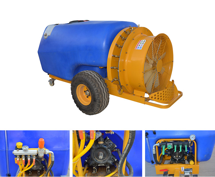 Langlebiges Strukturdesign: Die Rohre des AirBlast-Anhängespritzens bestehen aus rostbeständigen Materialien. Die Flüssigkeitspumpe ist eine Doppelzylinder-Membranpumpe. Durch diese Konstruktion bleibt die Maschine lange funktionstüchtig. Der Sprüharm lässt sich zusammenklappen und automatisch in seine ursprüngliche Position zurückfahren. Dadurch werden Schäden durch Hindernisse vor Ort vermieden. Dadurch verlängert sich auch die Lebensdauer der Ausrüstung.