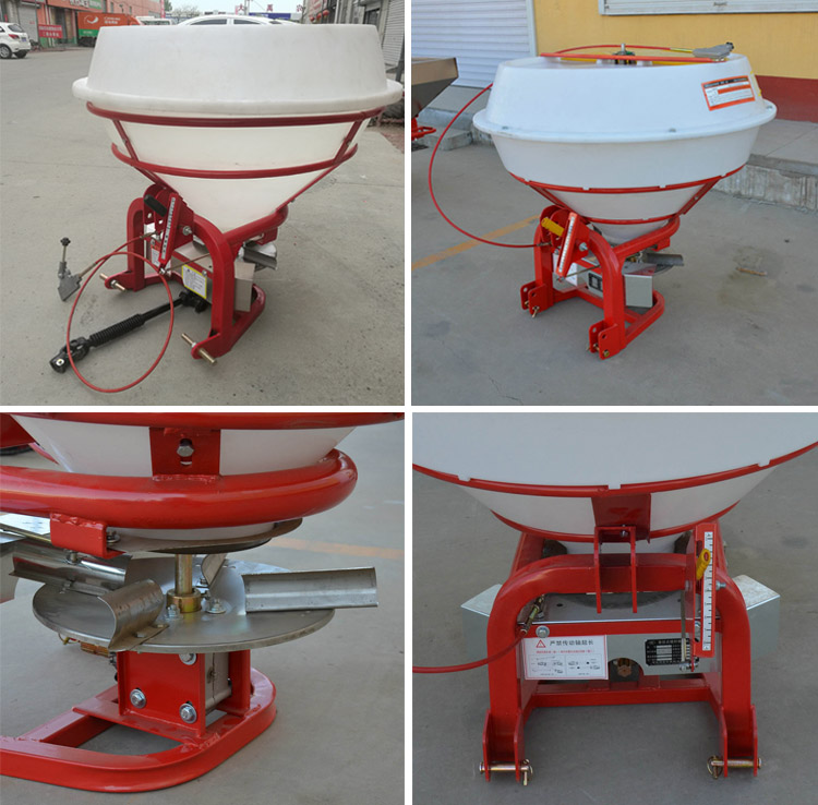 Leistungseingang: An das Getriebe der Düngemittelverteilungsmaschine über die hintere Ausgangsübertragungswelle des Traktors angeschlossen. Sie treibt die Kettenradgruppe an, um die konveierende Schnecke und die Düngerspreadungsscheibe synchron zu machen.