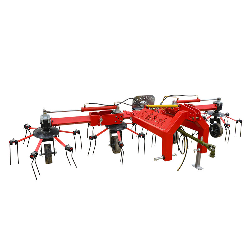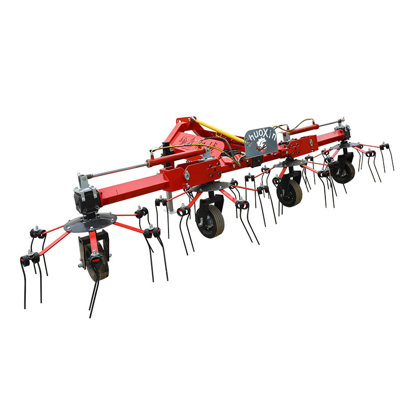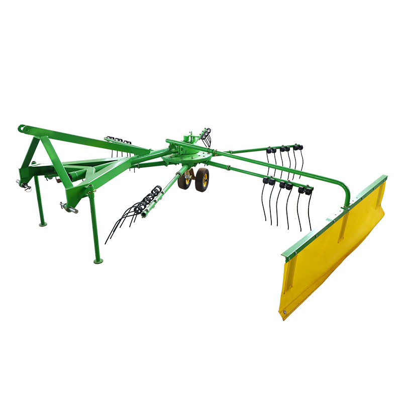 Der Rake ist eine Futtererntemaschine, die die Weidelehne integriert. Nachdem die Weide geerntet wurde, muss die Weide mit einem Spreizer sonnenbeleuchtet sein, um die Ballenbedingungen so bald wie möglich zu erreichen. Der Spreizer kann die Weide auf dem Feld gleichmäßig verteilen, was die schnelle Verdunstung von Wasser erleichtert und das Schneiden der Weide in den Ballen erleichtert oder vor der Silage trocken ist. Wenn die Feuchtigkeit der Weide einen Zustand erreichen kann, in dem sie getrocknet werden kann, werden die Ernte in eine Scheune mit einem Rechen zusammengefasst und in Streifen in Streifen geschlagen, um den Betrieb vorzubereiten. Wenn der Rake funktioniert, bewegen Sie die Federzähne, um die Ernte vorsichtig zu bewegen, um die Sonne zu sammeln oder zu verteilen, und vermeiden Sie die gemischten Trümmer oder Steine in der Ernte, um die Qualität der Weide oder des grünen Futters zu verbessern.