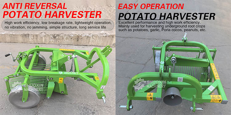 Die integrierte Grabvorrichtung gewährleistet die Genauigkeit der Grabtiefe, während der schwimmende Fräser darauf ausgelegt ist, Unkraut effektiv zu schneiden und den Grabwiderstand zu verringern. Es eignet sich hervorragend für kleine Traktoren und kann Kartoffeln schonend aus dem Boden ziehen, ohne Schäden zu verursachen. Es eignet sich besonders für Kleinbauern.