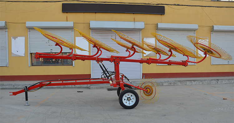DerTraktorrad Rakessind Art der Maschinen, die zur Ernte von Gras verwendet werden, die in langen Streifen auf dem Boden verstreut sind. Der Zweck des Heuharfers besteht darin, das Gras gründlich zu trocknen und die Sammlung von trockenem Heu zu erleichtern. Nach der Beziehung zwischen der Richtung der Heustreifen und der Vorwärtsrichtung der Maschine können sie in zwei Hauptkategorien unterteilt werden: horizontal und lateral. Die integrierten Heustreifen sind parallel zur Vorwärtsrichtung der Maschine. Die Form der Heustreifen ist ordentlich, locker und gleichmäßig. Die Bewegungsentfernung des Gras ist klein, und es gibt nur wenige Verunreinigungen, was es für natürliche Graslandschaften und künstliche Weiden mit hohem Zunahme geeignet ist.